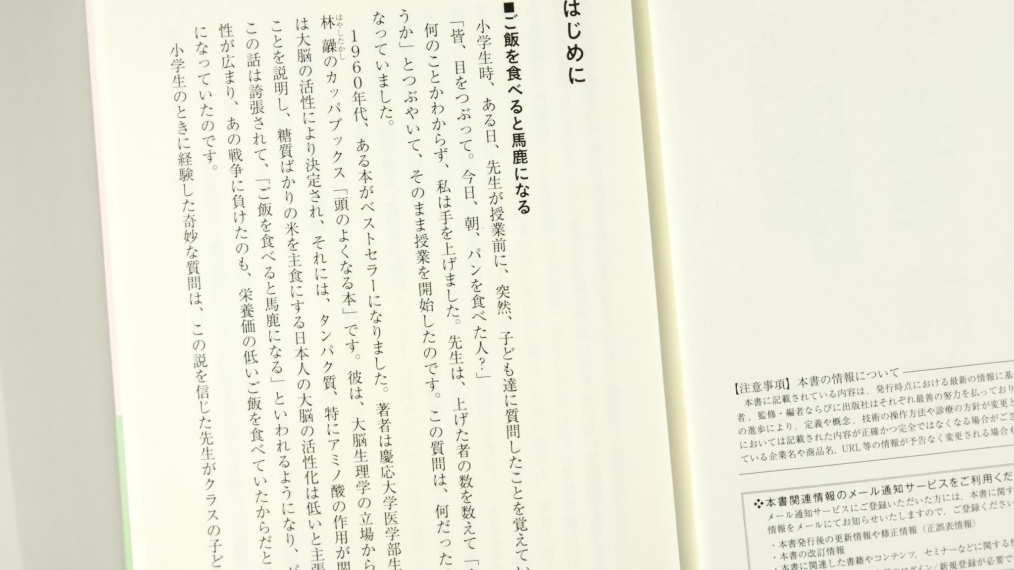 『小説みたいに楽しく読める栄養学講義』の話は、「おいしい給食」より1世代前、1960年代にはじまる(*)。戦後の食料難を米国からの物資でしのぎ、小中学校で広く給食が行き渡ったころのこと、「ご飯を食べると馬鹿になる」という言説がはやった。給食をきっかけに食事の欧米化が始まったコンプレックスもあったかもしれないが、栄養について科学的に考察できなかったせいもあるだろう。