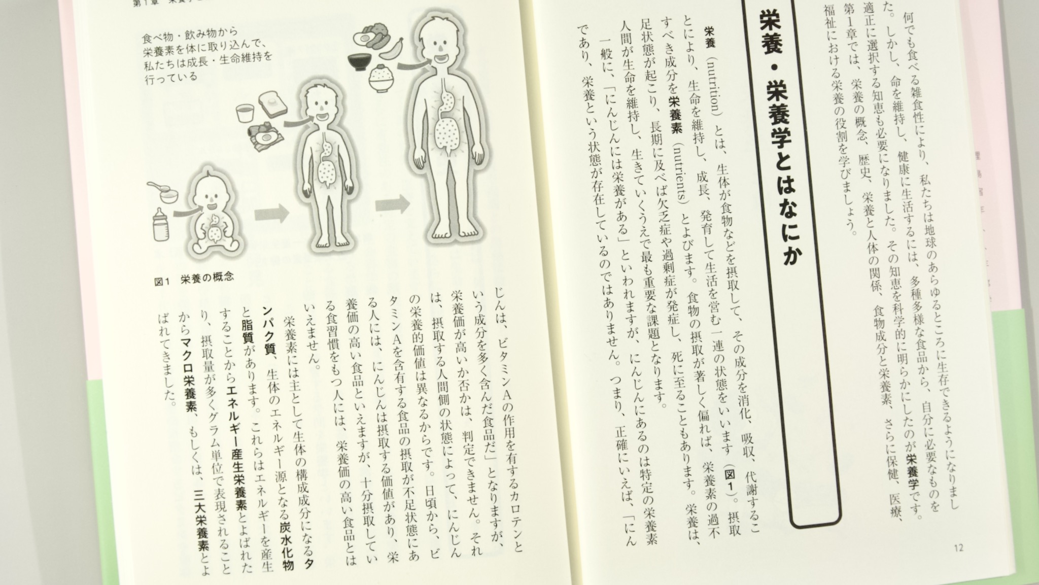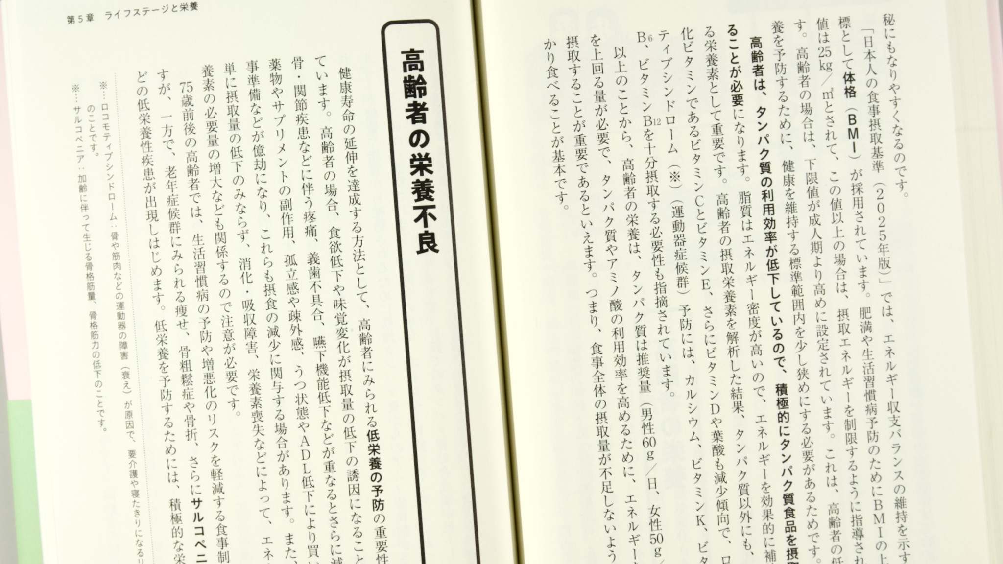 後半は、ライフステージごとの栄養から、傷病者の栄養まで。医療との関わりも多いところだ。