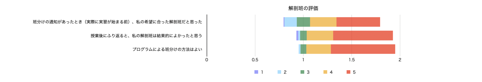 解剖班はプログラムによる組み合わせで作成された。高評価が得られた。