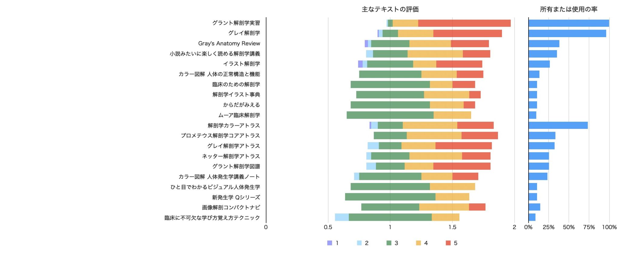 解剖学の授業では、教科書がよく利用されている。他大学に比べてもよく売れていると聞く。『グラント解剖学実習』は指定。『グレイ解剖学』、『解剖学カラーアトラス』はほぼ指定。『Gray’s Anatomy Review』は試験の出題に使うと公表している。『小説みたいに楽しく読める解剖学講義』は教員の著書。