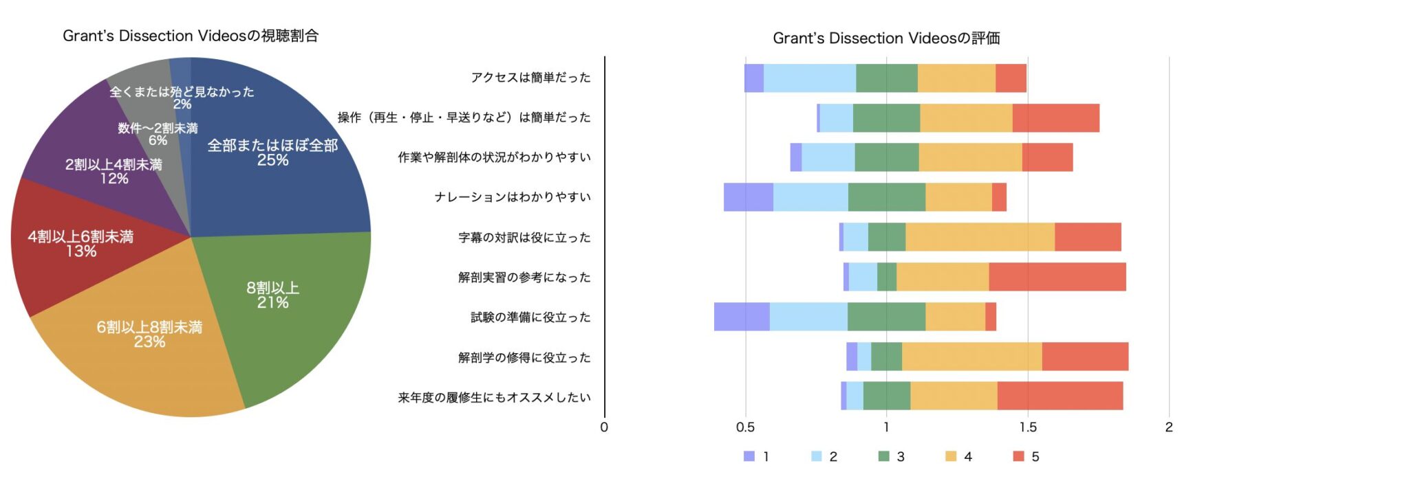 本学では肉眼解剖学履修生の学習に供するためにGrant’s Dissection Videosを契約している。全78本のビデオのうちどのくらいが視聴されたのか、それがどうだったのか、訊ねた。