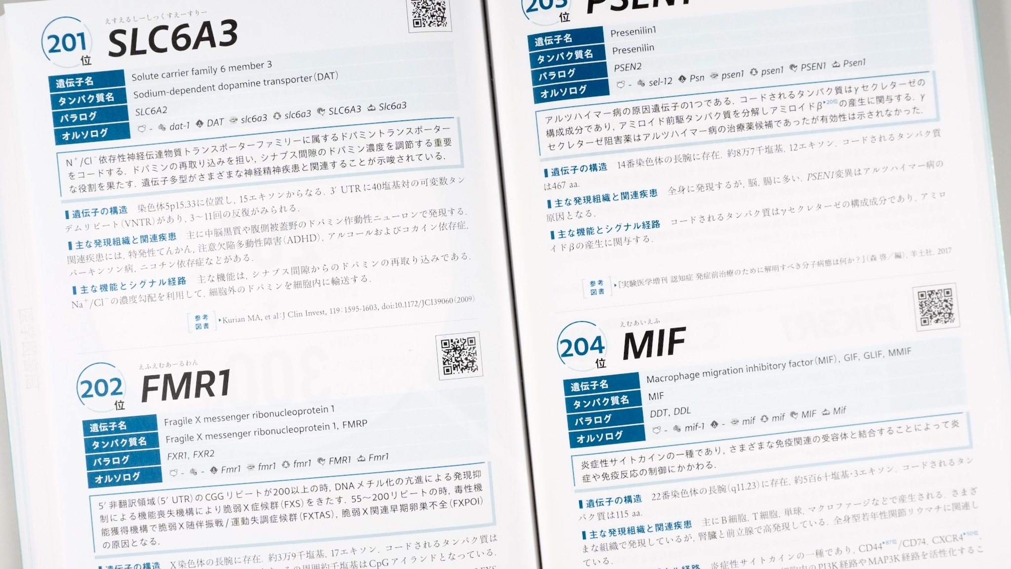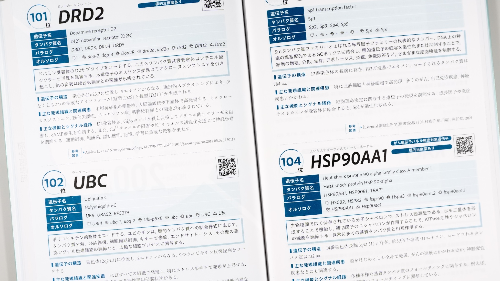 ただしヒトの遺伝子に限っているので、専門とする分野が違うと、場違いな感じがする。例えば発生生物学であれば、hoxやshhやwntやemxやslitやsryがない(bmpはあった)。