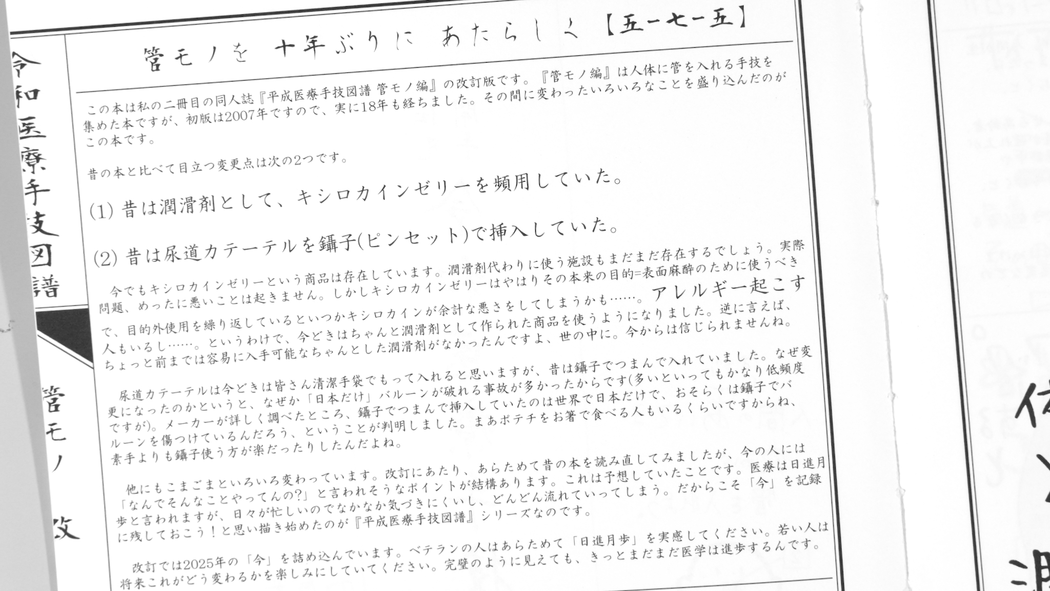 ねじ子先生から夏コミの新刊をいただいた。医療手技図譜シリーズの「管モノ編」の改訂版である。