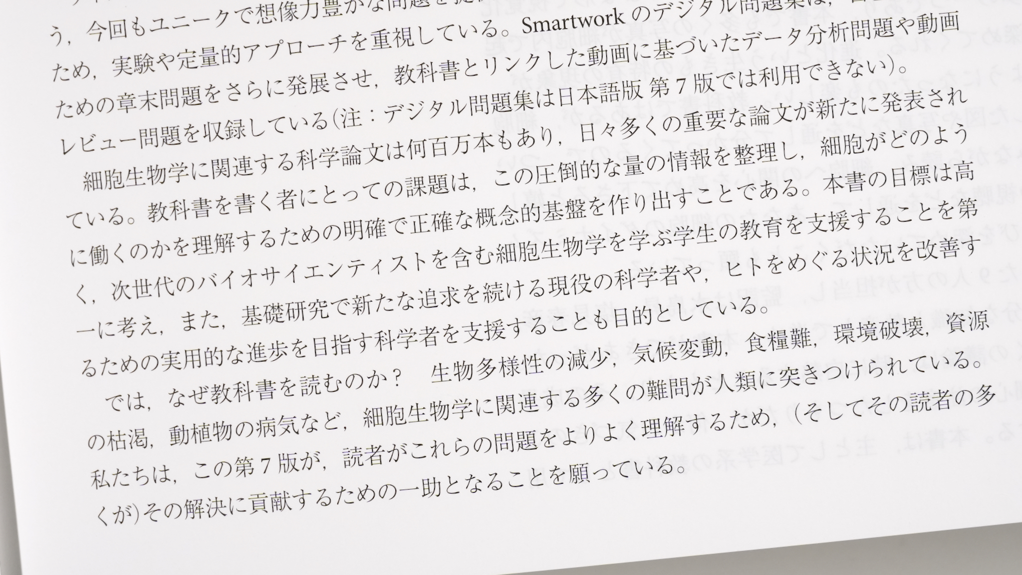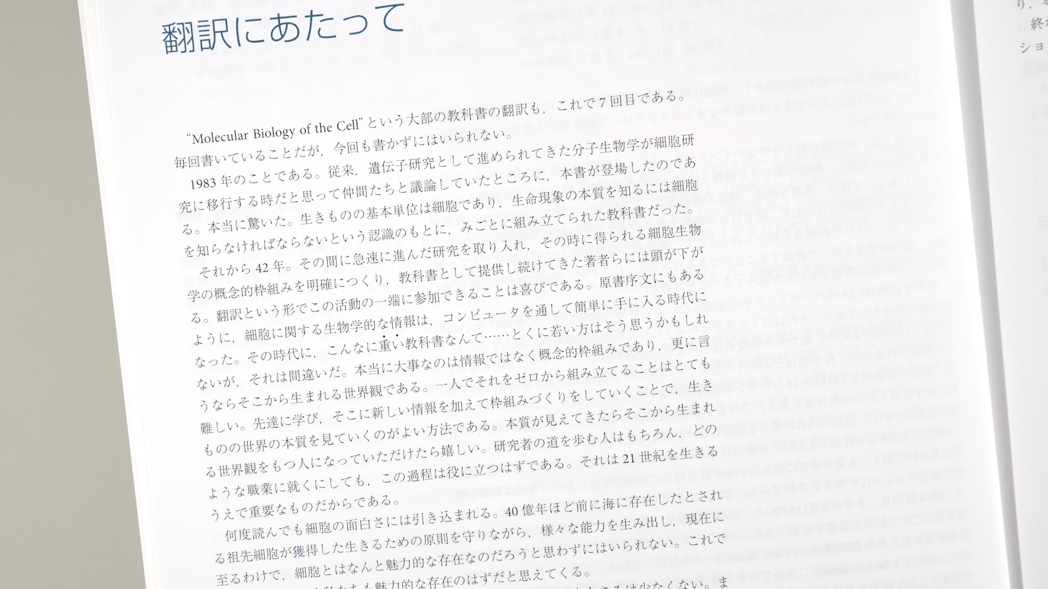 細胞の分子生物学』の新版日本語版、「原著第7版」である。解剖学なら『グレイ解剖学』、生理学なら『ガイトン生理学』、神経科学なら『カンデル神経科学』、内科学なら『ハリソン内科学』というように、医学生物学にはいくつかベンチマークになる教科書がある。それらに並ぶひとつ。