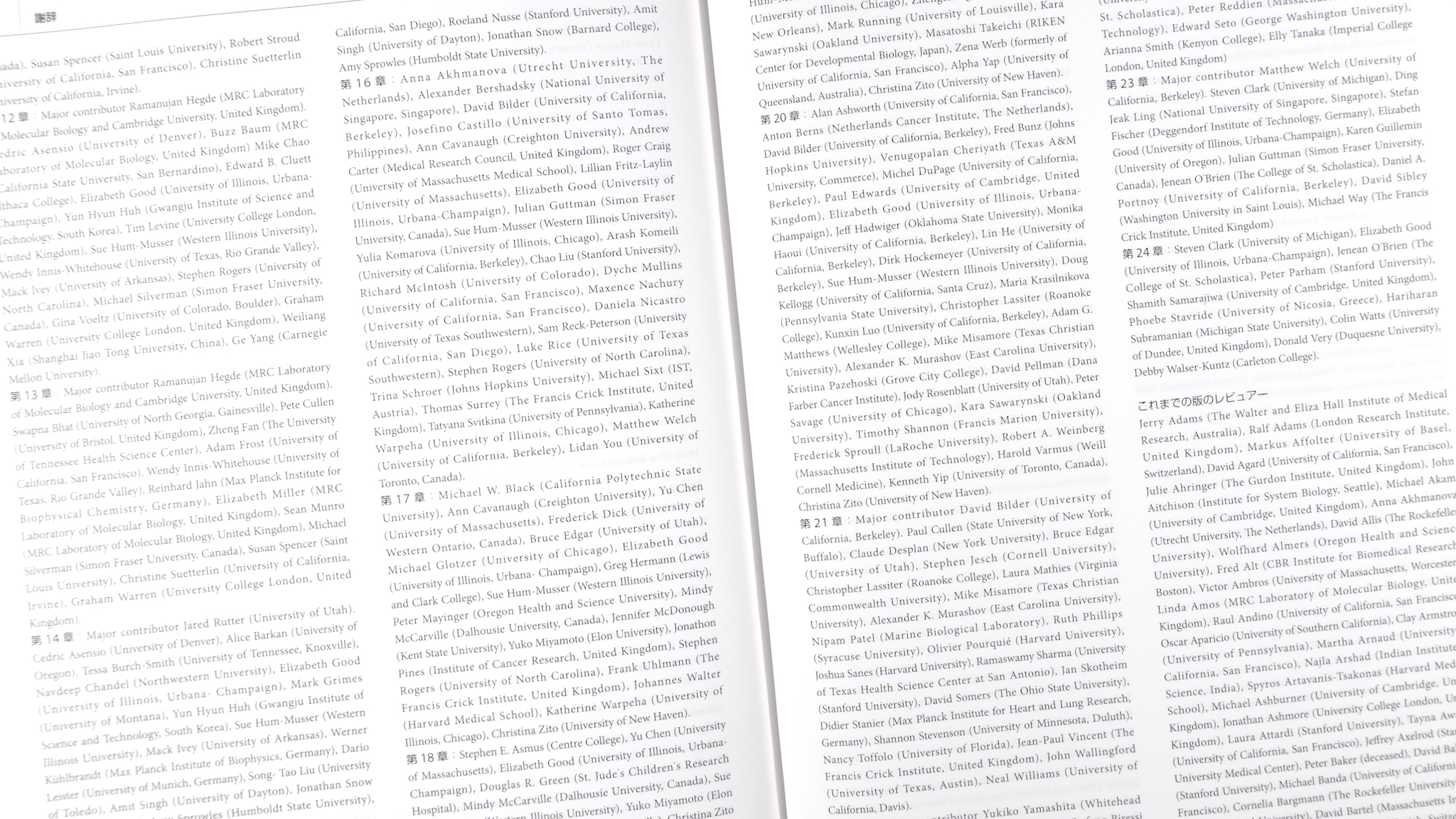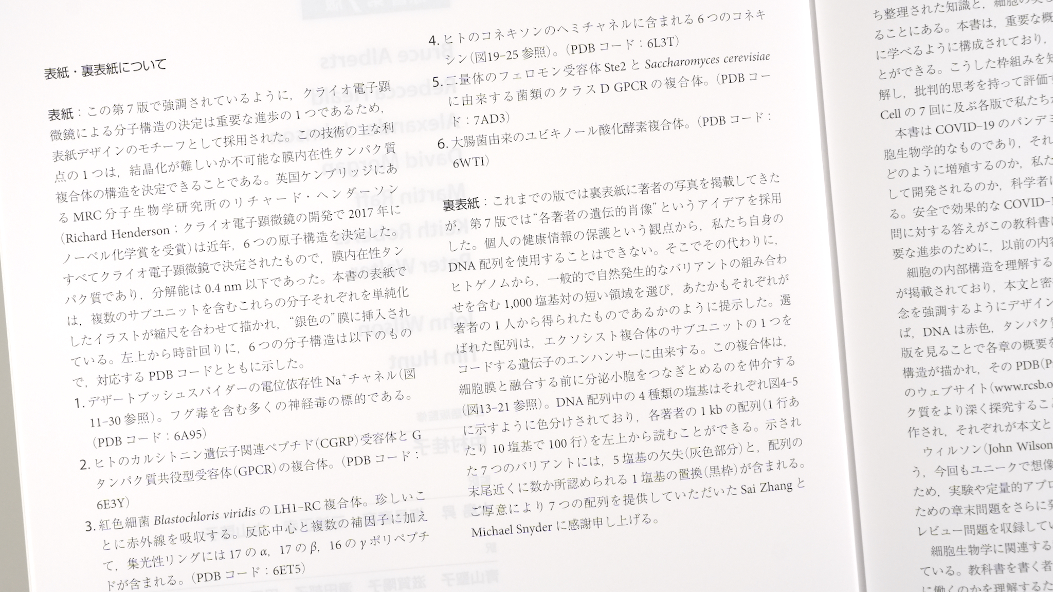この『細胞の分子生物学 第7版』の謝辞には査読者や情報提供者の膨大なリストがある。