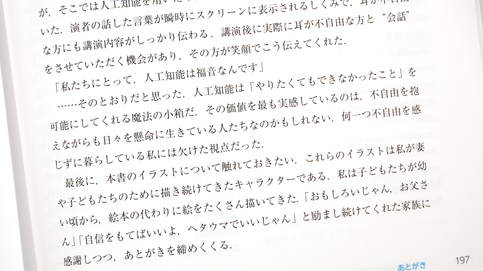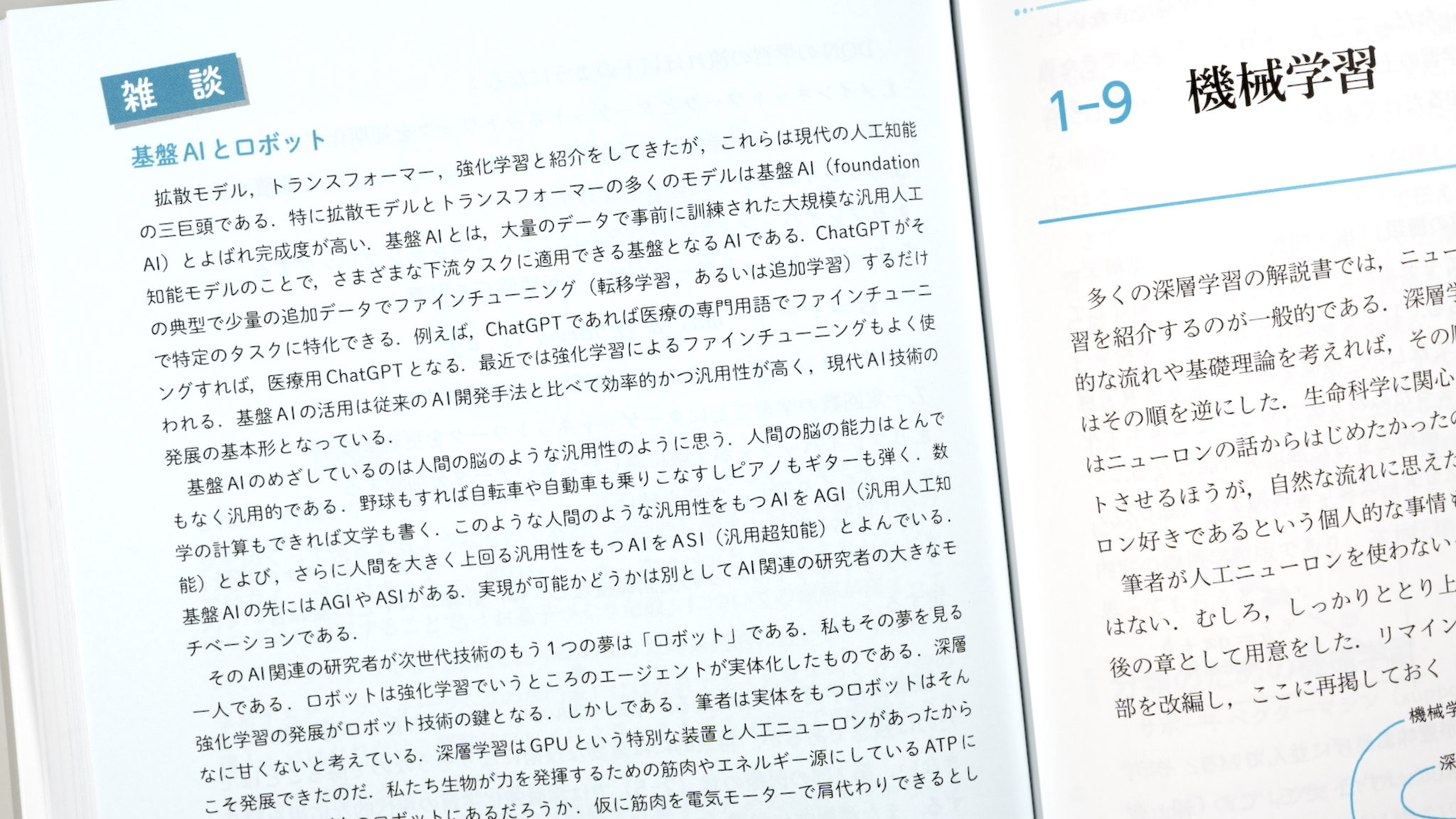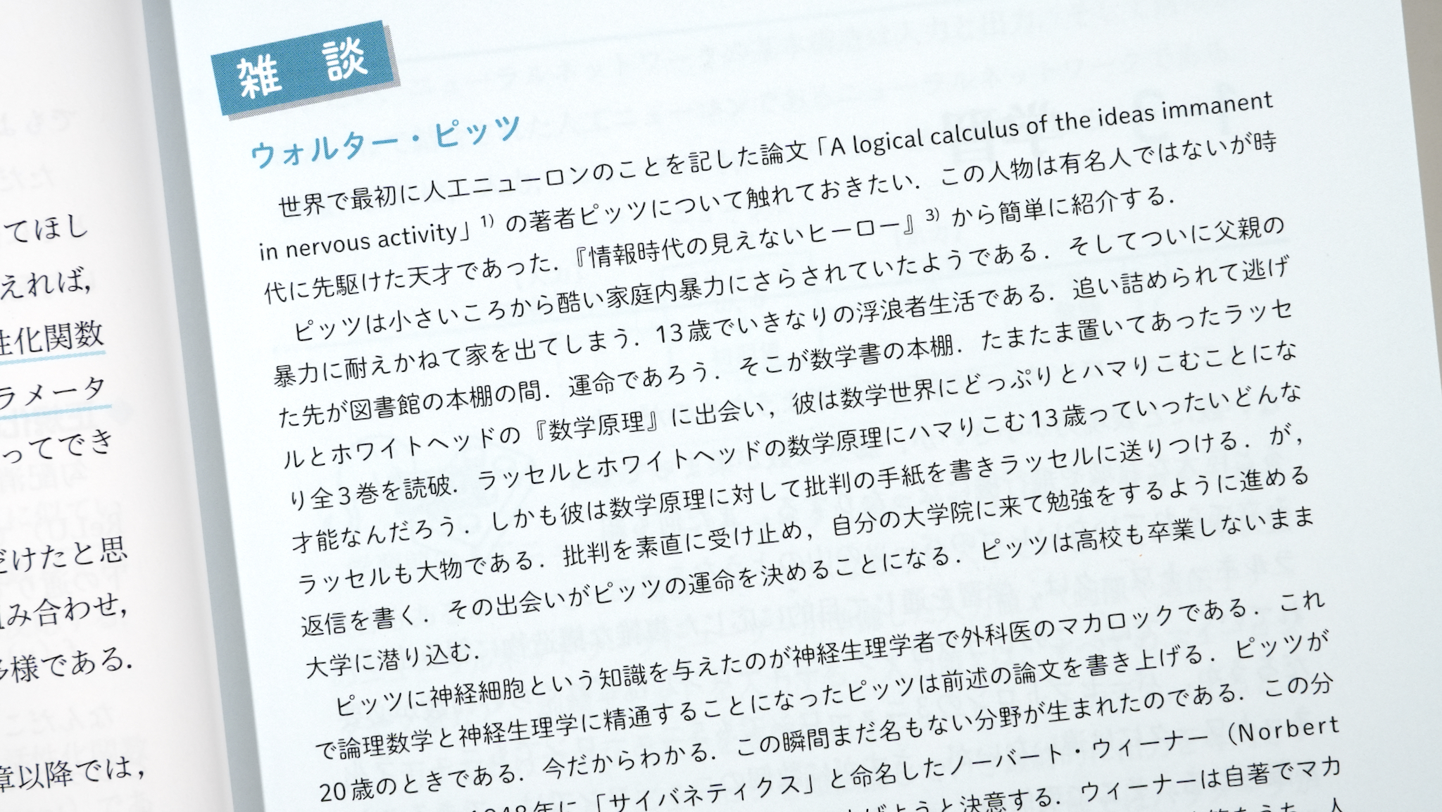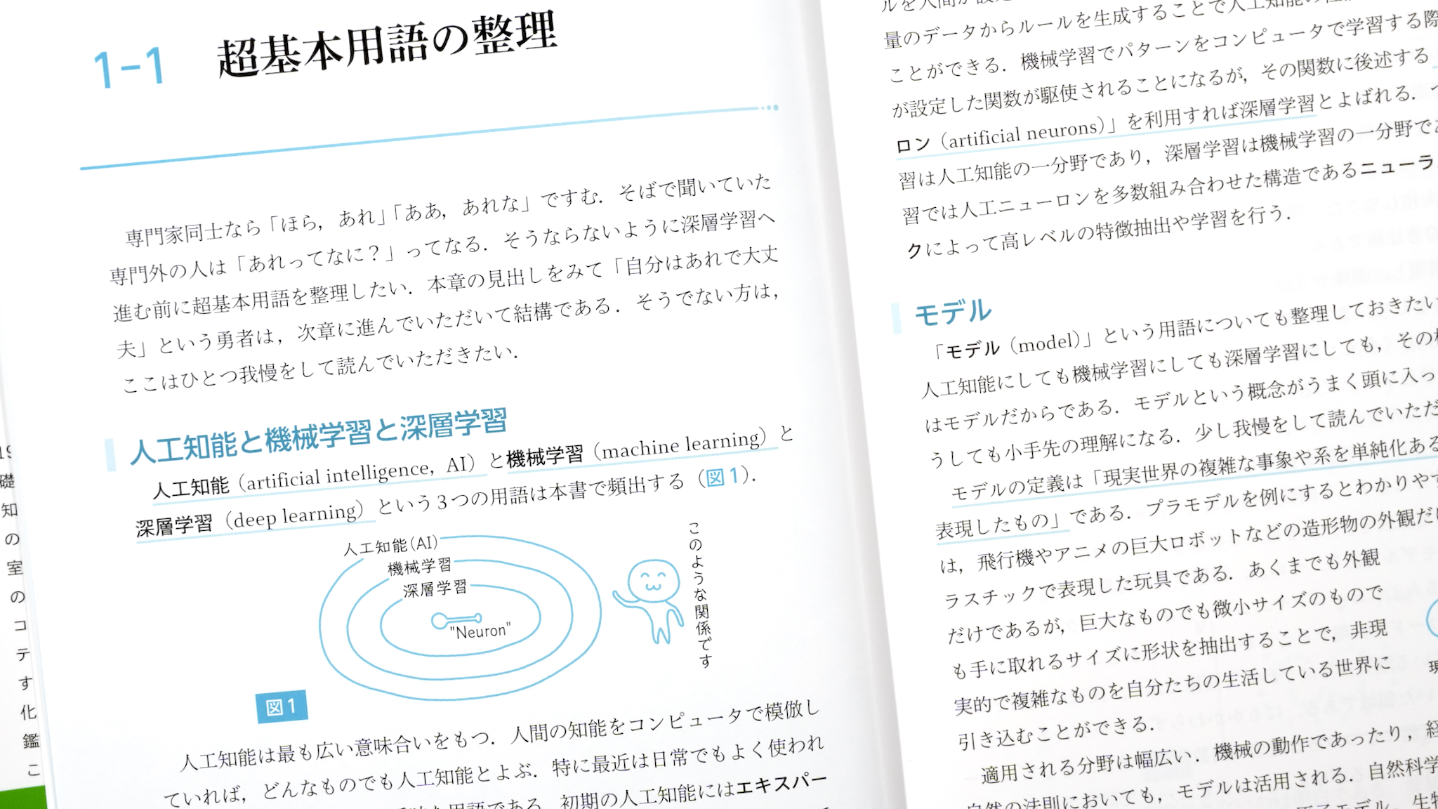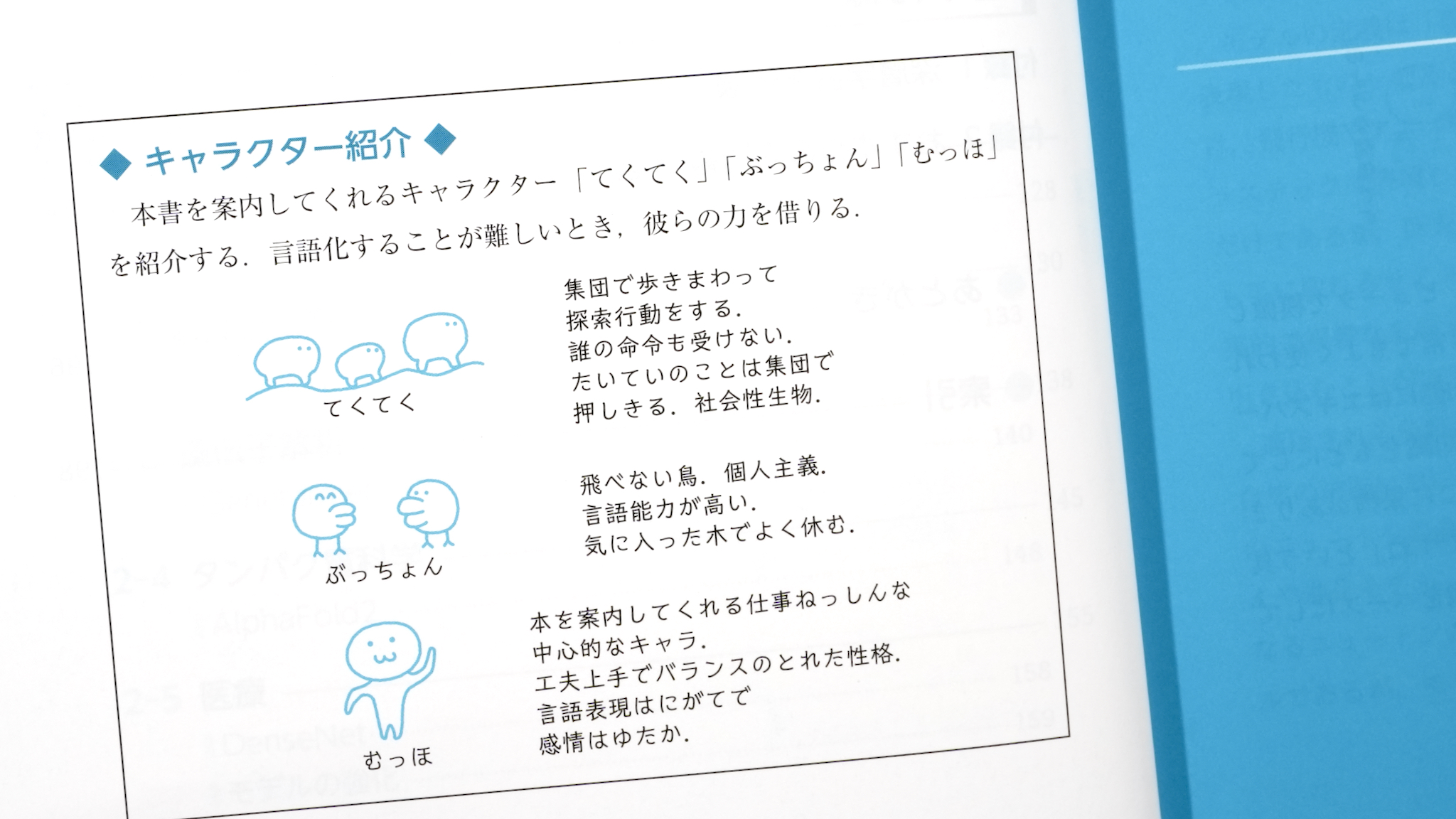 なるほどなるほど、人工知能とか機械学習とか深層学習とかおんなじもんかとおもってたけど、階層構造なんだな。モデルというのはそういうことなんだな。コンピュータ上に仮想的につくられた「人工ニューロン」とはずいぶん実物を単純化してるんだな、と、まあそんな感じで読み進める。ところどころ、例のキャラがいる。