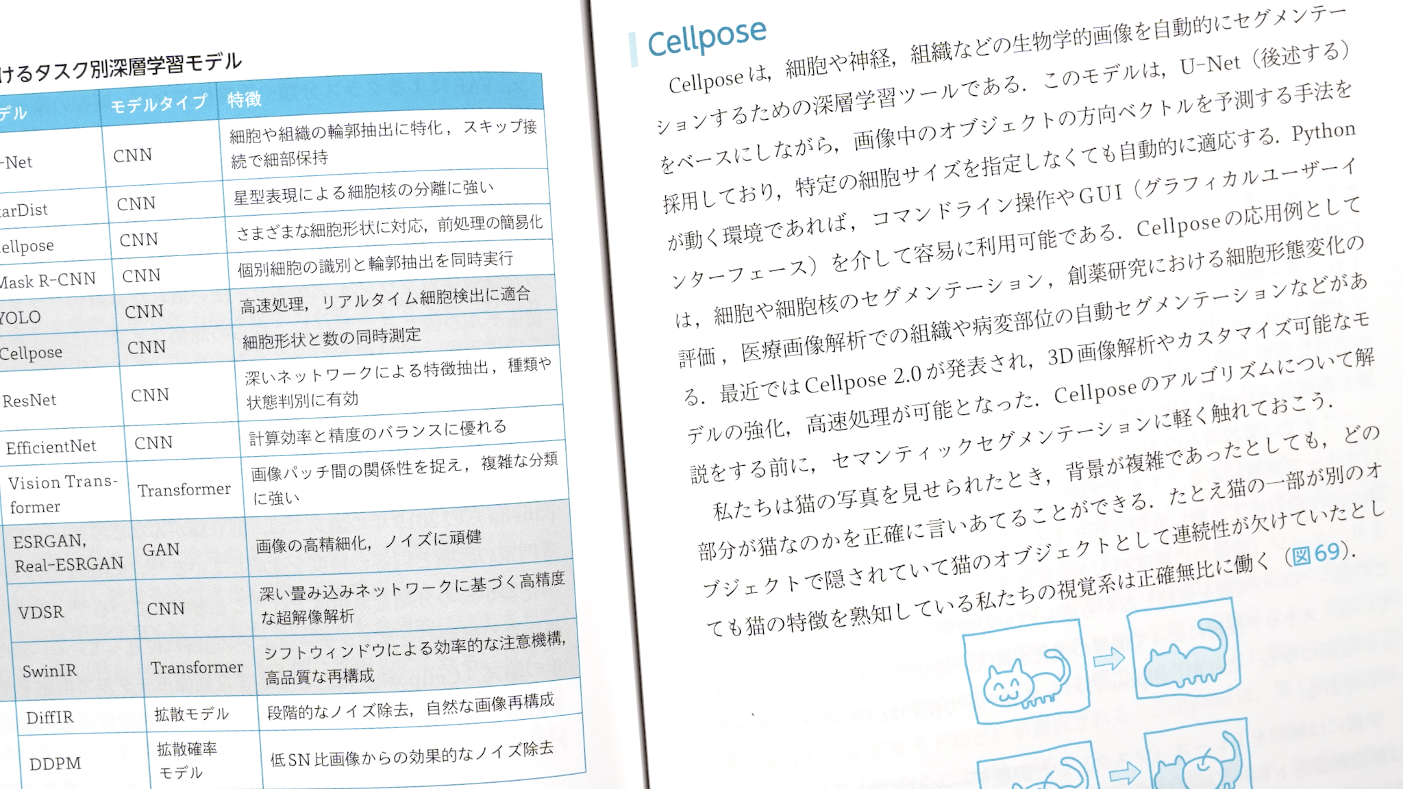 まず画像解析。AI以前は手作業でポチポチやっていた(まあ、いまでもやっているけど)セグメンテーションを自動化するシステム。たくさんあるが、代表的なのが仕組みとともに概説されている。何ができるかなどの表があって、選択の助けになっている。