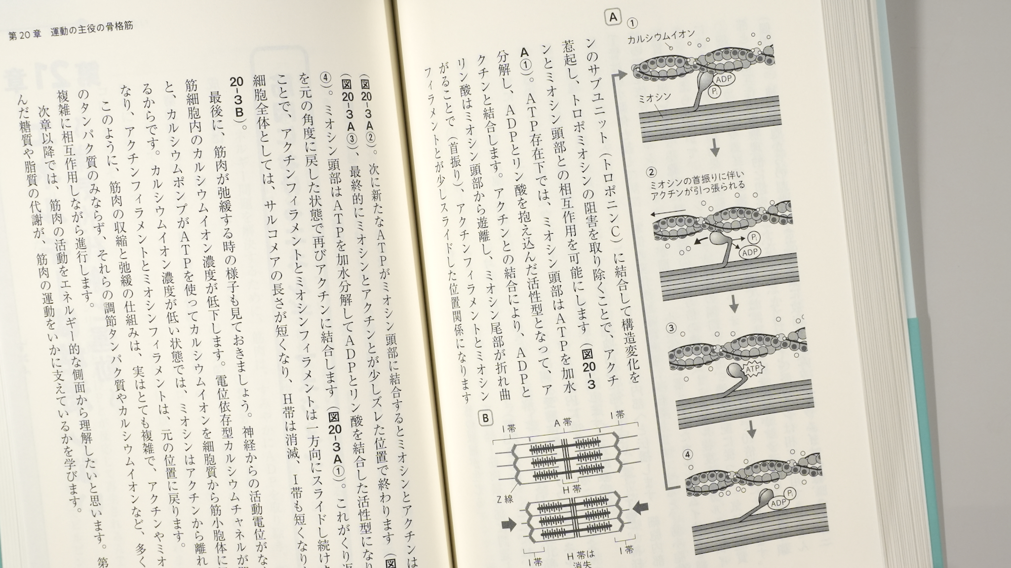 筋収縮[吉村成弘. 2025. 小説みたいに楽しく読める生化学講義. 羊土社(東京). p.226-227]
