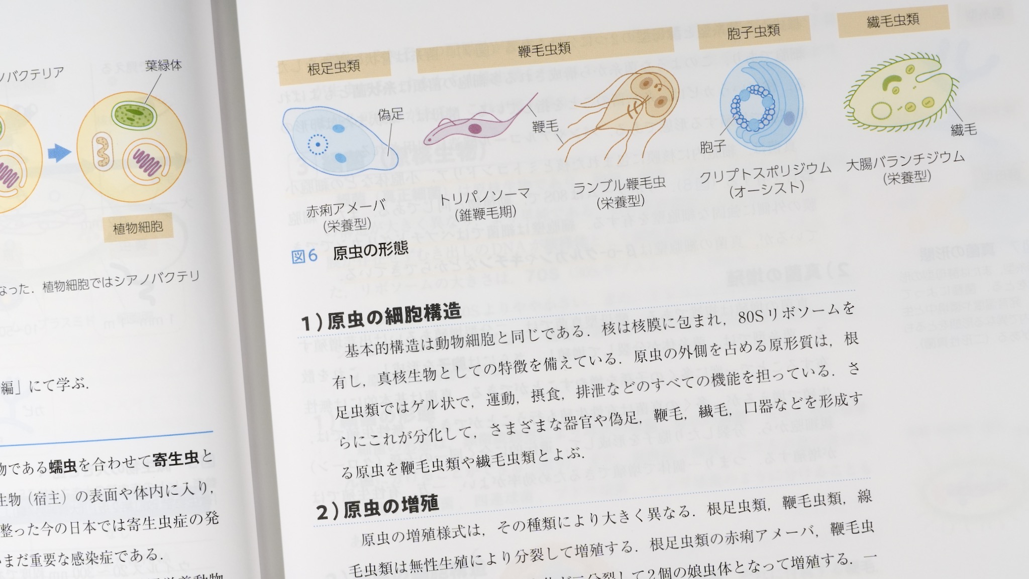 イラストが簡明な線と優しい色調で描かれている。検鏡して病原体を同定するようなミッションには向かないが、それは他にテキストがあるし、ネットを検索すれば画像が見つかる。本物の生の色調(葉緑体以外だいたいは無色透明)や染色された色(色素による)とは違っているので、そこは注意。