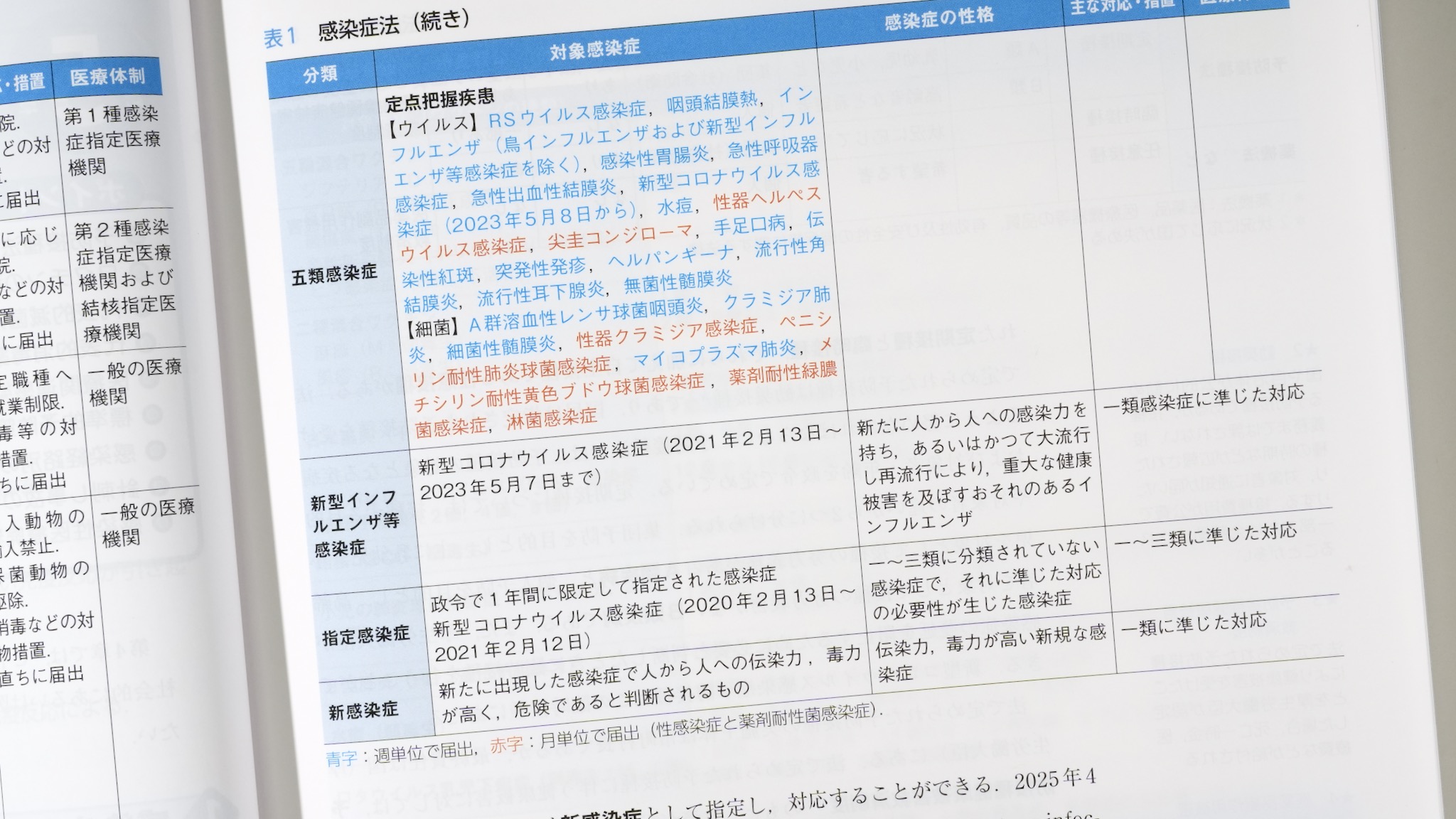 新型コロナウイルス感染症は、指定感染症→新型インフルエンザ等感染症→五類感染症と変更されていった。また、Hibワクチンは5種混合ワクチンに含まれるようになった。