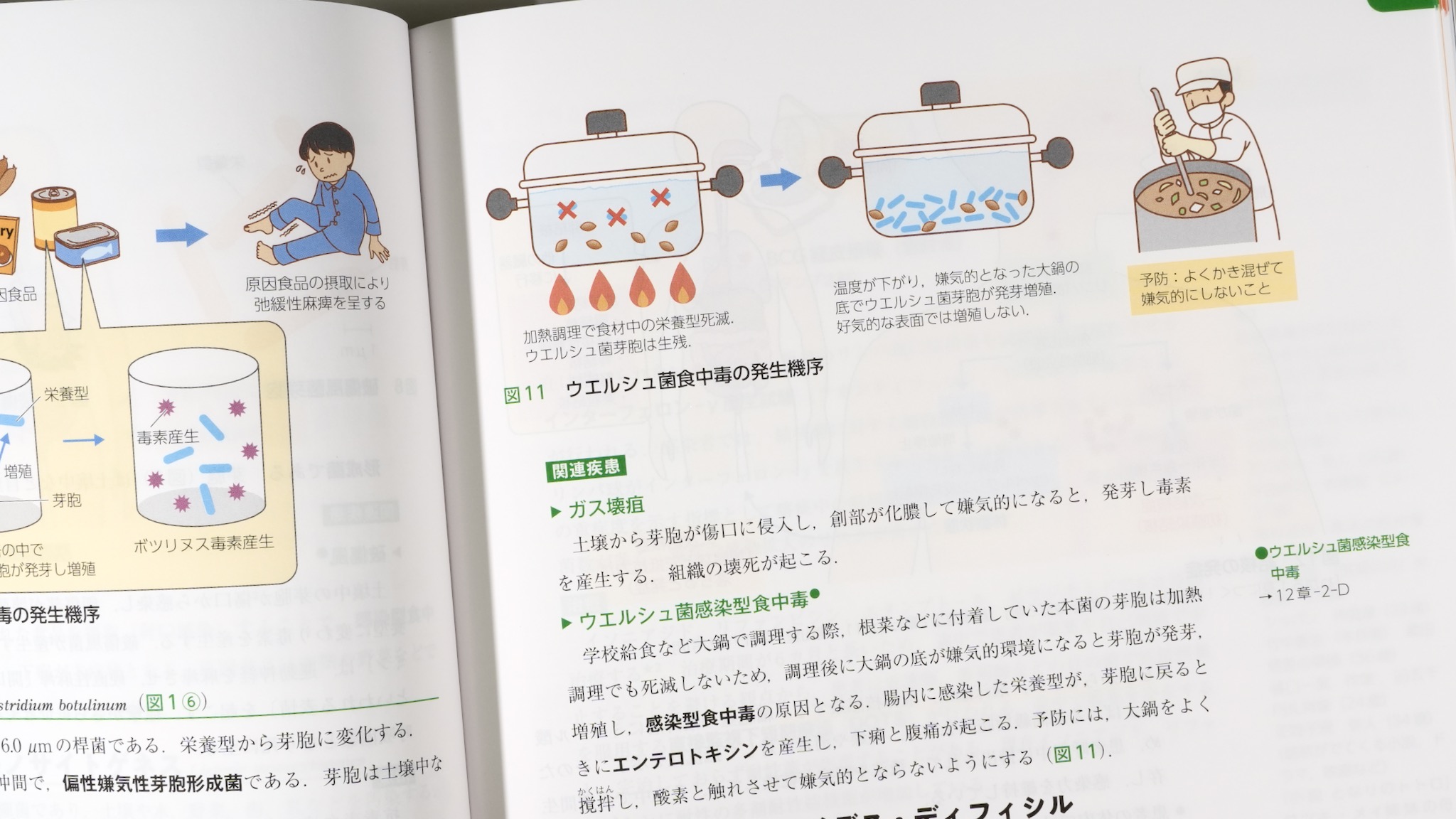 本書の「病原体の各論編」にも多くの微生物が記載されているけれども、それぞれに特徴的なエピソードが語られ、イラストや写真もあって、印象に残りやすい。そもそもひとは、そのように学んでいくものなのだ。食材を煮るときによくかき混ぜるのは芽胞対策でもあるなど、知っていたら実生活の役にも立つエピソードだ。