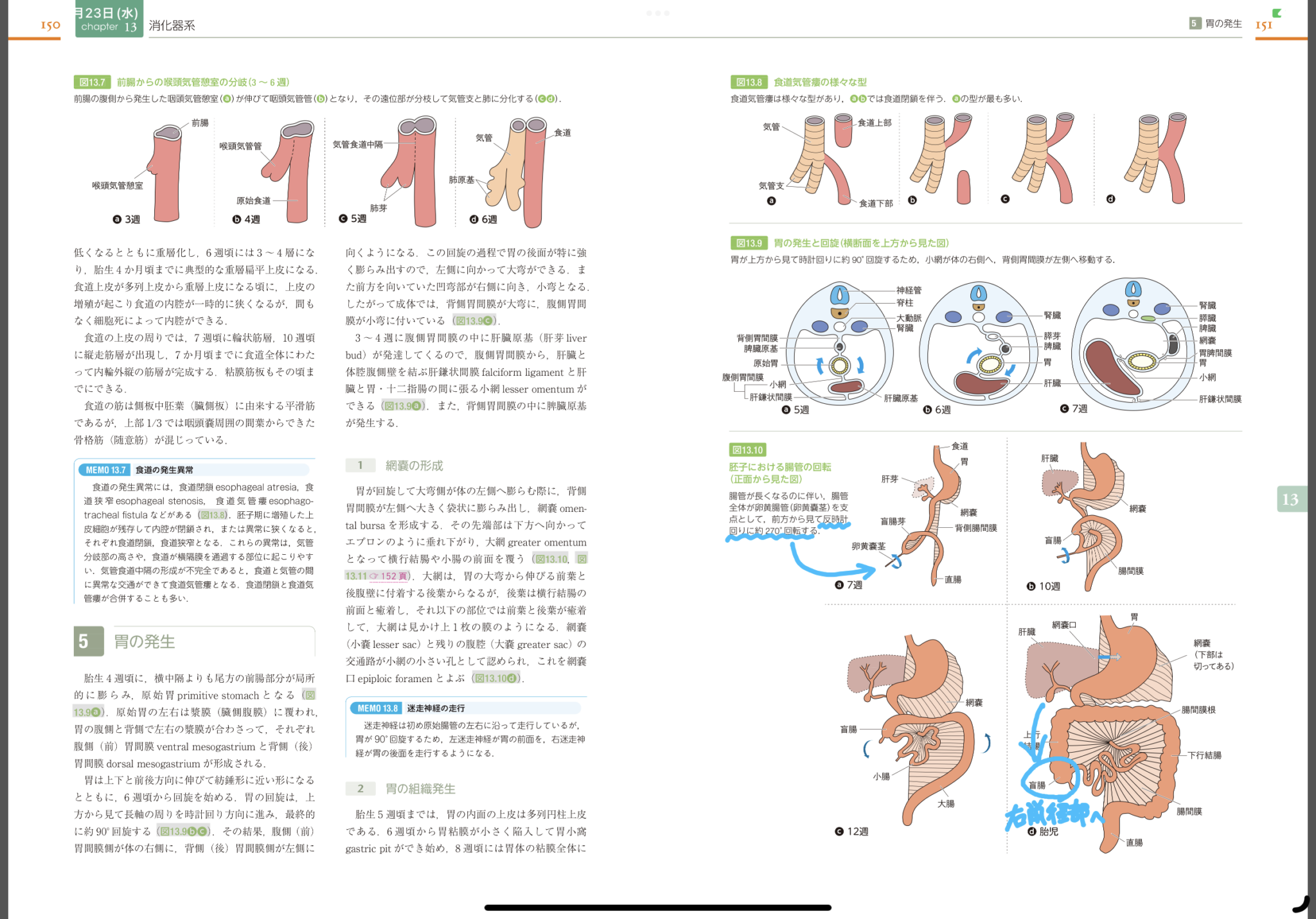 M2PLUS版『人体発生学講義ノート』に描き込みした(リンクは非表示に設定してある)