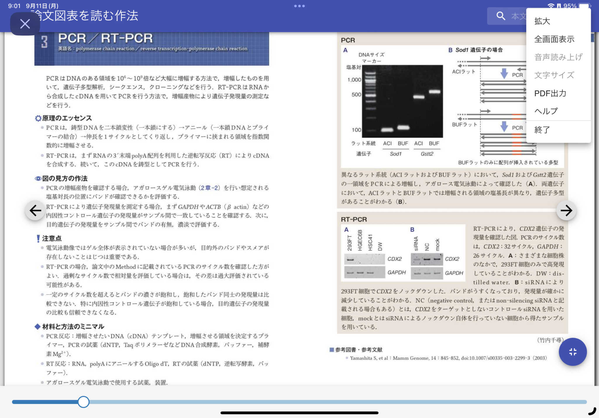 電子版は冊子体のままの表示ではなく、電子版向けに再構成されている。iPad miniのような小さめの画面でも読みやすい。マーカーのみ可能。